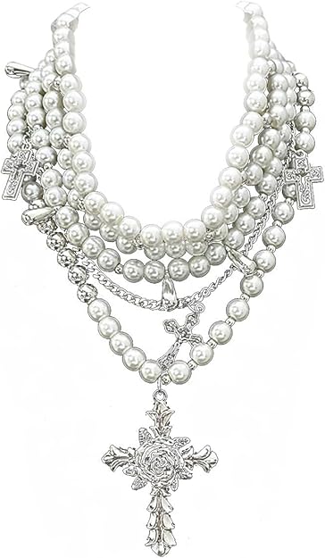 - Multilayer Pearl Necklace:The pearl necklace is composed of 4 layered pearl necklace and 1 goth cross necklace.The emo pearl necklace can be split into three necklaces to wear or wear together.It is filled with gothic/goth/vintage/emo/punk atmosphere and cool!